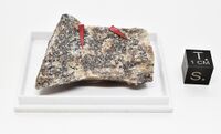 Коллекция Систематическая коллекция, №91878. Мелкие темно-красные зерна с черными зернами франклинита в актинолите Длина экспоната 5.0 см.