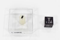 Коллекция Систематическая коллекция, №91884. Бежевые пластинки на черном матриксе (браунит?) Длина экспоната 0.4 см.