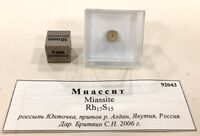 Коллекция Систематическая коллекция, №92043. Зерно миассита с изоферроплатиной и осмием в препарате для микрозонда. Документация на отдельном листе.