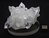 Коллекция Систематическая коллекция, №92299. Сросток бесцветных прозрачных дипирамидально-призматических кристаллов фторапофиллита размером до 3см. Длина экспоната 10 см.Размер минерала 3.00 см.