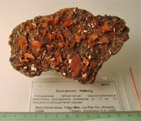 Найден: Red Cloud mine, Trigo Mts., La Paz Co., Arizona, США.
