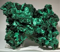 Коллекция Систематическая коллекция, №92856. Ярко-зеленые шелковистые радиально-лучистые агрегаты малахита. Длина экспоната 14.0 см.Размер минерала 2.00 см.