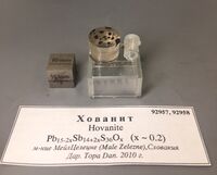 Коллекция Систематическая коллекция, №92957. Стально-серый агрегат образованный срастаниями зерен хованита, робинзонита, буланжерита. Длина экспоната 0.5 см.