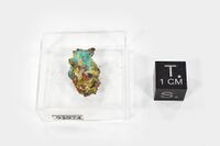 Коллекция Систематическая коллекция, №92974. Зеленые корочки редгиллита на меди Длина экспоната 2.0 см.