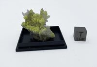 Коллекция Систематическая коллекция, №92997. Снежно белые мелкие кристаллы и присыпки криптогалита на скелетном кристалле нашатыря с серой Длина экспоната 3.0 см.