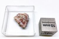Коллекция Систематическая коллекция, №93096. Мелкие прозрачные зерна кумтюбеита размером до 150 микрон составляют около 15-20% в агрегате спуррита, рондорфита, гидроксилэллестадита, булфонтейнита, эттрингита, гидрокалюмита и других гидросиликатов кальция. С редкими лакаргитом и сребродольскитом. Длина экспоната 1.5 см.