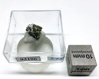 Коллекция Систематическая коллекция, №93106. Белое зерно баллираноита размером около 0,5см в флогопит- кальцит- апатит- гумитовом агрегате. Длина экспоната 1.0 см.Размер минерала 5.00 см.