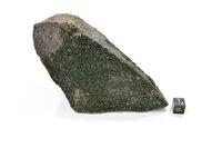 Коллекция Систематическая коллекция, №93409. Щетки мелких кристаллов уваровита по трещинам в массивном хромите. Длина экспоната 10 см.