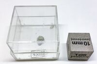 Коллекция Систематическая коллекция, №93520. Бесцветное досковидная частица аклимаита размером 0,2см Голотип. Длина экспоната 0.2 см.Размер минерала 0.20 см.