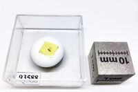 Коллекция Систематическая коллекция, №93588. Желтый пластинчатый кристалл хиллесхаймита размером около 1мм. Длина экспоната 0.1 см.