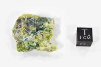 Коллекция Систематическая коллекция, №93747. Агрегаты бледно-желтого до бесцветного чангоита с зеленым гербертсмититом на кварце. Длина экспоната 3.0 см.