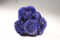 Коллекция Систематическая коллекция, №93817. Сросшиеся округлые конкреции азурита диаметром до 5 см. Длина экспоната 10 см.