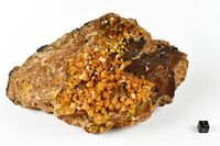 Коллекция Систематическая коллекция, №94275. Желто-оранжевые призматические кристаллы миметита размером до 1 см на лимонитизированной породе. Длина экспоната 23.0 см.Размер минерала 1.00 см.