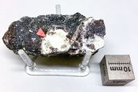 Коллекция Систематическая коллекция, №94304. Белые тонкозернистые обособления, сложенные в основном хатруритом и эттрингитом, со сребродольскитом. Фрагмент карбонатного переработанного ксенолита в щелочном базальте Длина экспоната 5.0 см.