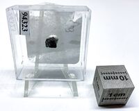 Коллекция Систематическая коллекция, №94323. Фрагмент черного монокристалла. Длина экспоната 0.5 см.Размер минерала 0.50 см.