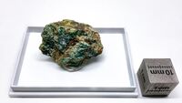 Коллекция Систематическая коллекция, №94355. Щетка мелких изумрудно-зеленых кристаллов тондиита на матрице. Длина экспоната 3.0 см.