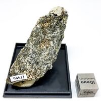 Коллекция Систематическая коллекция, №94611. Темно-коричневые до черного кристаллы фетисита размером до 4 мм с клинохлором и юконитом в полевошпатовом обособлении в сланце. Длина экспоната 6.0 см.