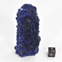 Коллекция Систематическая коллекция, №94958. Кристалл прозрачного дымчатого кварца размером 7 см в длину покрыт мелкокристаллической коркой белого непрозрачного кварца второй генерации. С одной стороны кристалла на белый кварц наросла корка синих антискелетных октаэдрических кристаллов флюорита размером до 1 см. Длина экспоната 7.0 см.