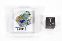 Коллекция Систематическая коллекция, №94985. Голубовато-зеленые примазки леогангита по трещинам в кварцевой породе Длина экспоната 2.0 см.