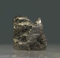 Коллекция Систематическая коллекция, №95250. Кристалл изоферроплатины размером 4х4х2 мм, покрытый тонкой плёнкой звягинцевита.