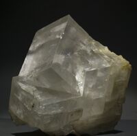 Коллекция Систематическая коллекция, №95254. Двойниковый сросток по (110) бесцветных прозрачных кристаллов доломита размером около 13 см. Длина экспоната 15.0 см.Размер минерала 13.00 см.