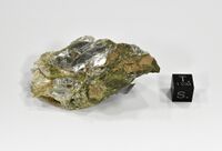 Коллекция Систематическая коллекция, №95328. Бесцветные пластинчатые кристаллы низкожелезистого клинохлора (лейхтенбергита) размером до 3.0 х 3.5 см, собранные в а агрегат наподобие открытой книги.С серпентином. Длина экспоната 5.0 см.