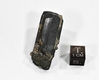 Коллекция Систематическая коллекция, №95504. Короткопризматический кристалл антимонита с хорошо образованной головой. Длина экспоната 4.0 см.Размер минерала 4.00 см.