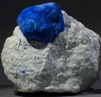 Коллекция Систематическая коллекция, №95532. Сфероидальная конкреция азурита диаметром 5 см в выветрелой белой породе. Длина экспоната 10 см.Размер минерала 5.00 см.