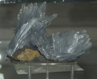 Коллекция Систематическая коллекция, №95541. Сросток нежно-голубых уплощенно-вытянутых кристаллов барита размером до 5 см на лимоните. Длина экспоната 11.0 см.Размер минерала 5.00 см.