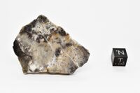 Коллекция Систематическая коллекция, №95616. Зерна катранаита размером до 0.3 мм в прожилках с таумаситом и афвиллитом, рассекающих измененный спурритовый мрамор с эльбруситом. Спил размером 5х3 x1 см. Типовой образец. Длина экспоната 5.0 см.