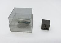 Коллекция Систематическая коллекция, №95737. Фрагменты зеленовато-синих кристллов хоганита (фракция менее 1 мм) Длина экспоната 0.1 см.