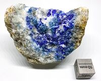 Найден: Тултуйское м-ние лазурита (рудная залежь 3), Слюдянский район, Иркутская область, Прибайкалье,Росcия.Минералы-спутники: Владимиривановит, Кальцит.