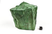 Коллекция Систематическая коллекция, №95830. Массивный зеленый волконскоит с небольшими черными пятнами оксидов марганца. Длина экспоната 10 см.