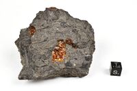 Коллекция Систематическая коллекция, №95834. Изометричные обособления янтаря размером до 2,5 см в сером флишевом песчанике формации Gurnigel Nappe. Длина экспоната 8.0 см.