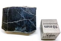 Коллекция Систематическая коллекция, №95897. Изометричные зерна стречерита размером до 0.5 мм в черном тонкозернистом ларнитовом агрегате. Голотип. Размер образца 3х2,5х0.8 см. Длина экспоната 3.0 см.