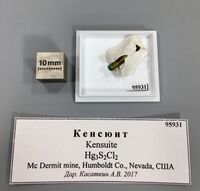 Коллекция Систематическая коллекция, №95931. Бесцветный игольчатый кристалл кенсюита размером менее 0.1 мм на стеклянном капилляре.