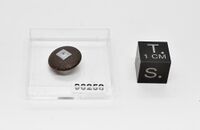 Коллекция Систематическая коллекция, №96258. Мелкие (до 30 микрон) коричневые октаэдрические кристаллы термаэрогенита на белой сульфатной корке (лангбейнит или афтиталит) на вулканическом шлаке. Фрагмент голотипа. Размер 0.1 х 0.1 х 0.1 см. Длина экспоната 0.1 см.