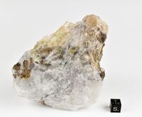 Коллекция Систематическая коллекция, №96581. Бледно-сиреневое обособление капицаита-(Y) размером около 1.5 см в льдистом кварце с ридмерджнеритом, лейкосфенитом, эвдиалитом, микроклином.
