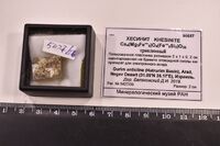 Коллекция Систематическая коллекция, №96687. Полированная пластинка размером 2 х 1 х 0. 2 см смонтированная на брикете эпоксидной смолы как препарат для электронного зонда. Длина экспоната 2 см.