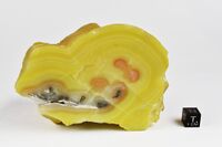 Коллекция Систематическая коллекция, №96771. Приполированный срез ярко-желтой зональной корки смитсонита. Размер образца 10 х 6.5 х 7 см. Длина экспоната 10 см.