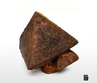 Коллекция Систематическая коллекция, №96844. Уникальный по размеру октаэдрический кристалл магнетита 14 х 14 х 12.5 см, к которому прирастает меньший октаэдр (5 см по ребру). С игольчатыми кристаллами амфибола (рихтерита ?) и их отпечатками на гранях. Больший октаэдр частично разбит природно залеченной трещиной. Поверхность магнетита покрыта ржавчиной. Образец 16 х 14 х 14 см. Длина экспоната 16 см.Размер минерала 14 см.