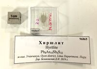 Коллекция Систематическая коллекция, №96865. Очень мелкие (<<1 мм) чёрные плоские зерна хиршлита в желатиновой капсуле. Фрагмент котипа.