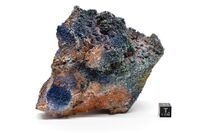 Коллекция Систематическая коллекция, №97148. Корки оливково-зеленого бадаловита, тёмно-синего никенихита, фиолетово-синего кальциойохиллерита на вулканическом шлаке. Размер образца 21 х 15 х 12 см. Длина экспоната 21 см.