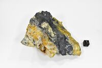 Коллекция Систематическая коллекция, №97574. Прожилок мощностью до 3 см мелкозернистого свинцово-серого селенсодержащего теллура в диккит-кварцевой жильной породе с баритом, теллуритом. Длина экспоната 12 см.