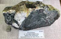 Найден: Березовский завод, к северо-востоку от Екатеринбурга, Средний Урал, Россия.Минералы-спутники: Тетраэдрит, Ковеллин. Расположен на витрине exp38d