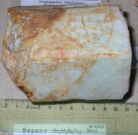Найден: Белая гора, 70 км к юго-востоку от Усть-Каменогорска, Калбинский хребет, Казахстан. Расположен на витрине exp52