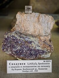 Найден: Красный Кордон, Калбинский хребет, Казахстан.Минералы-спутники: Сподумен, Кварц. Расположен на витрине exp53
