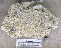 Найден: шахта 730, дайка Андреевская, Березовский завод, Средний Урал, Россия. Расположен на витрине exp38d