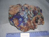 Найден: Джезказган, Казахстан.Минералы-спутники: Азурит, Малахит. Расположен на витрине exp45d