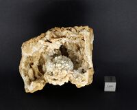 Коллекция Месторождения, №31087. Грубо-шестоватый сферолит в полости выщелачивания кварцевой конкреции. 8.2х6.4х6.9 см.